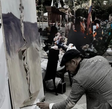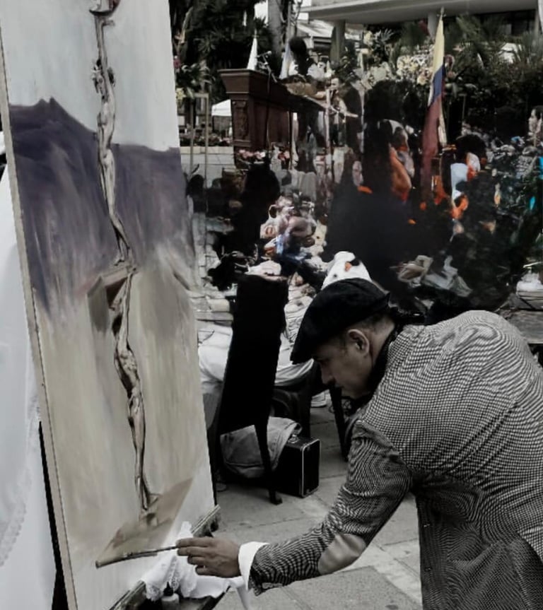 Giovanni Bustos, born in 1977, is a Colombian painter and sculptor. He emigrated to Europe in 1999, at the age of 23, and settled for sixteen years in the city of Barcelona, Spain, where he developed and expressed his pictorial creativity. The young student’s sharp intellect once promised a brilliant future in the field of medicine, according to his father; however, his passion for drawing led him to begin working at the Fernando Botero Museum in Medellín, at the Miguel Ángel Umaña Workshop, and at the Luis Caballero Impressionist Painting Studio. As a portrait and landscape artist, he held his first solo exhibitions in government institutions in his home country.